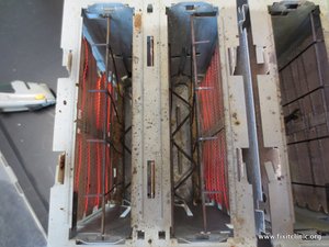 In this particular toaster both the hold-down mechanism and the power switch are part of the handle. The electrical current that runs through it heats it to make it red hot with a temperature of 1100F to 1200F 519C to 566C.