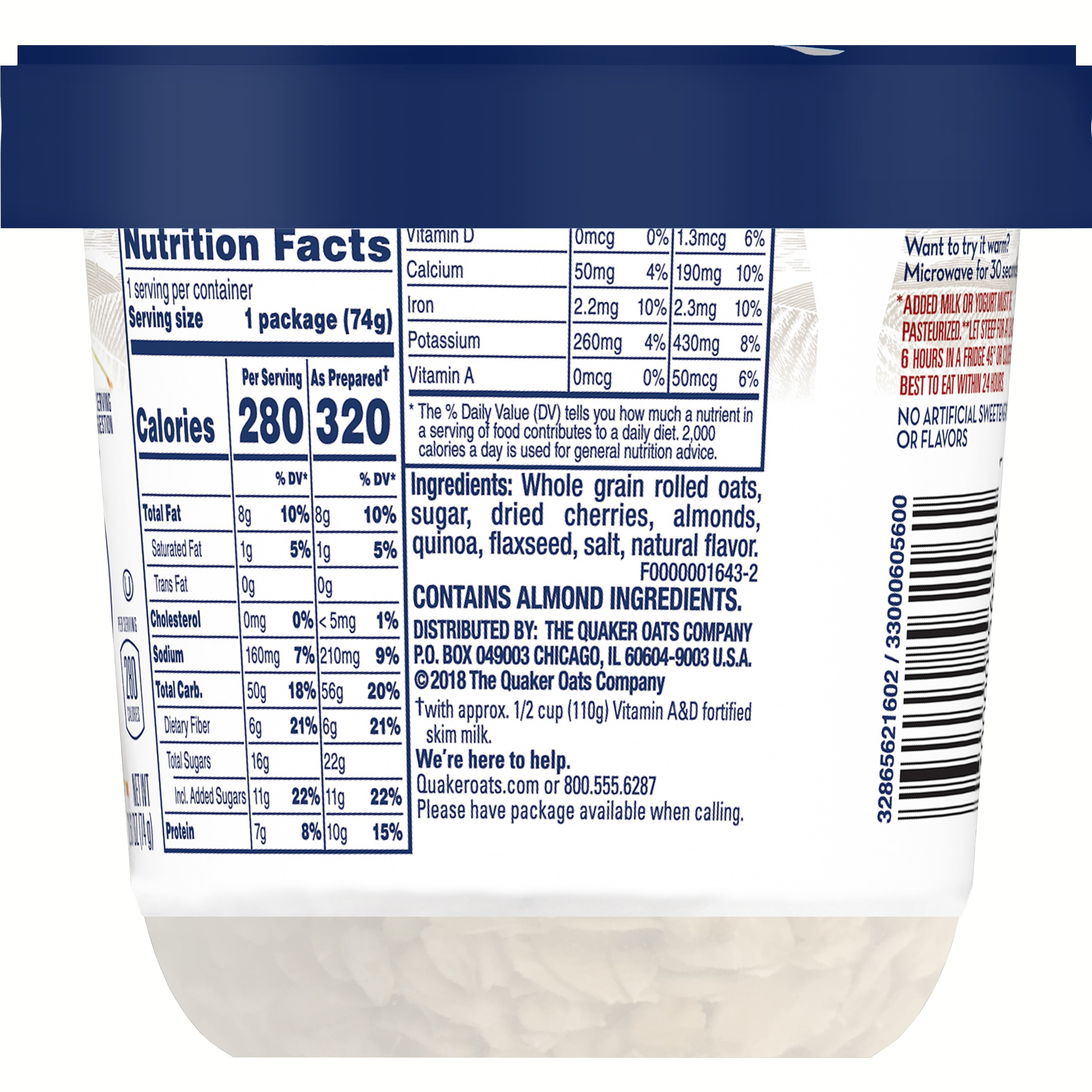 Overnight oats nutrition facts. You can eat overnight oats at home on the go or at your desk and its a great way of getting some essential protein fibre. Rolled overnight oats by The Quaker Oats Company nutrition facts and analysis. The oats soak up the moisture which makes them perfect to eat the next day.