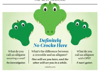 A big list of what do you call an alligator jokes. What is the scientific name for an alligator. You can only choose one to save the day who is it.