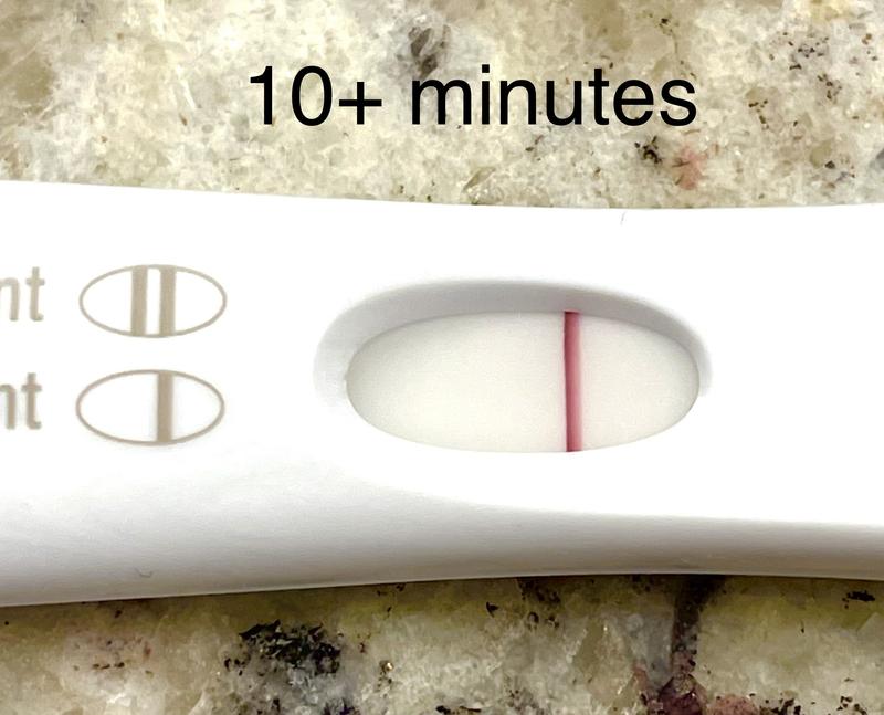 This usually ranges between a couple of minutes up until 10 minutes later. Youll find interesting info on these disappearing test lines. I took a pregnancy test yesterday morning and when I took the test I saw in the first window that there was a faint line and then when it went to the second one it slowly disappeared the the second one went brighter so Im not sure what to do or think if Im probably pregnant or not also this morning my partner put his ear on my tummy and he said he heard other heart beat while I.